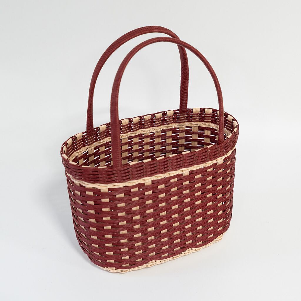 飛ばし編みの朱色プチ・トート/善田 希